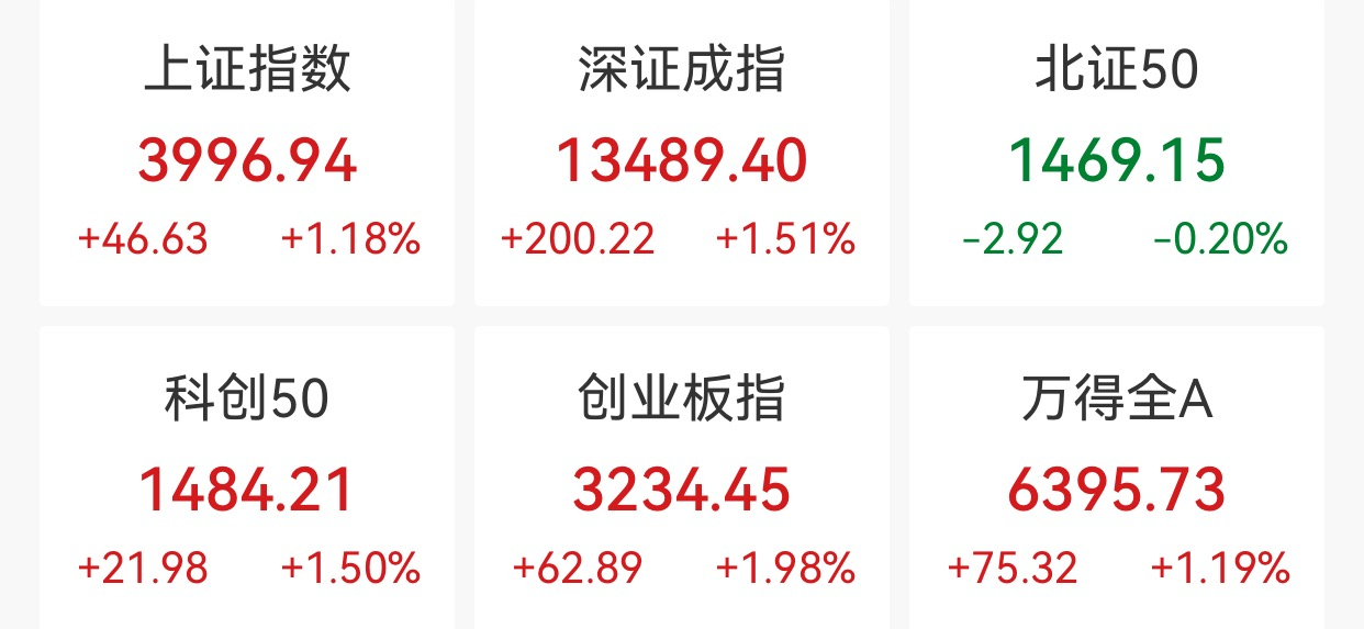中新经纬10月27日电 27日,A股三大指数走高,沪指再创十年新高,盘中逼近4000点。截至收盘,上证指数涨1.18%,报3996.94点;深证成指涨1.51%,报13489.40点;创业板指涨1.98%爱一配,报3234.45点。